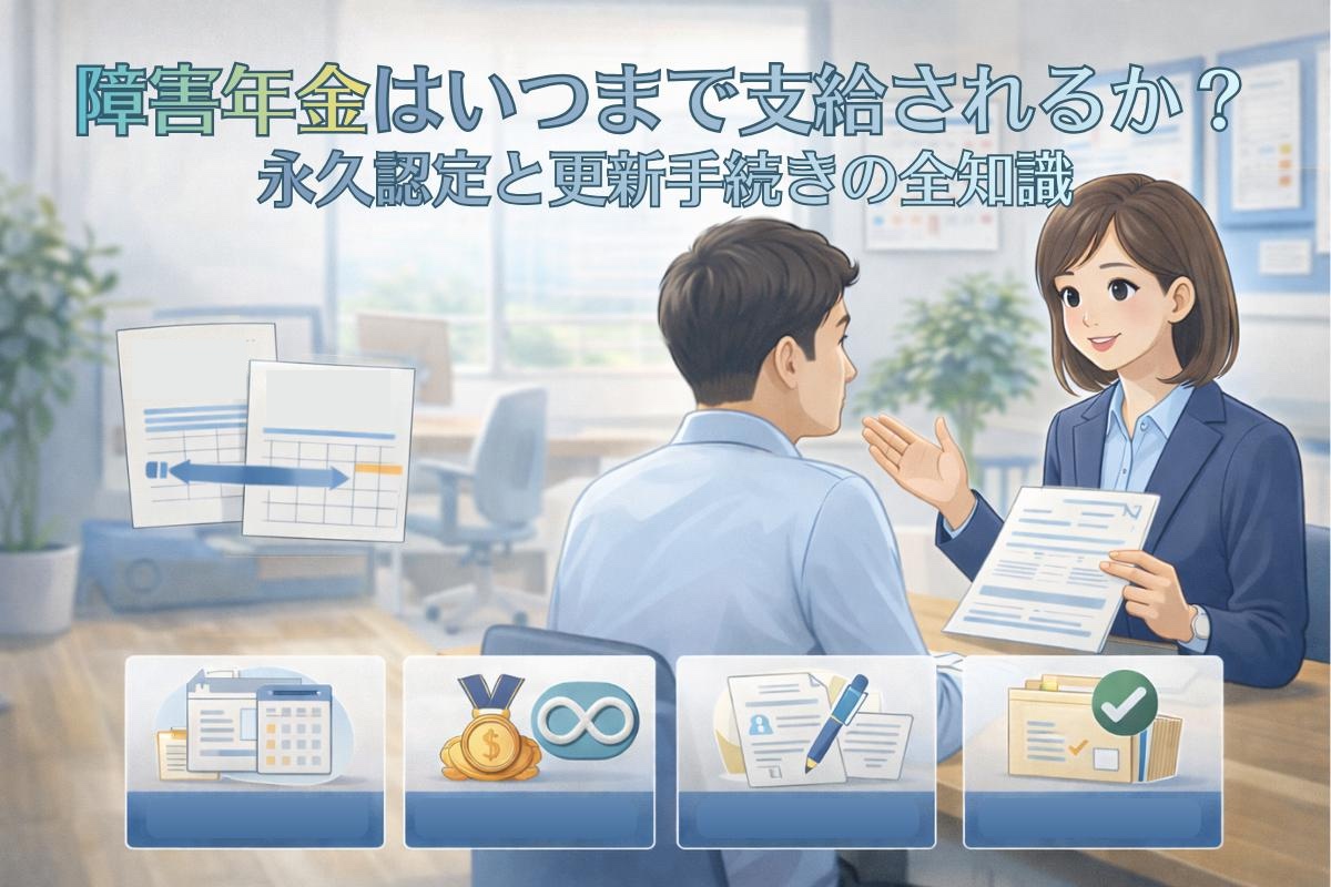 将来、障害年金が「いつまで」支給されるのか不安に感じていませんか?「永久認定」「有期認定」「65歳以降」「更新の審査」など、制度の複雑さに戸惑う方も多いはずです。